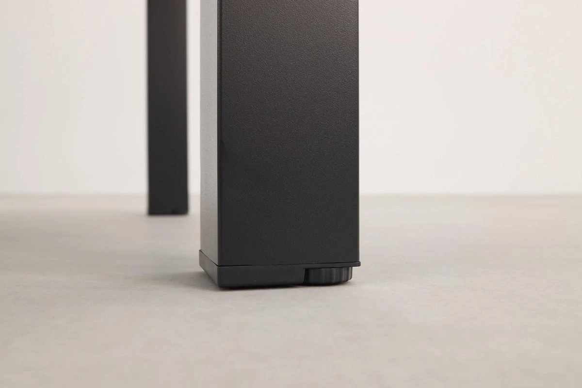 De Alma tuintafel heeft een aluminium frame welke afgewerkt is met een beschermende antracietkleurige poedercoating. Deze coating zorgt ervoor dat het frame kras- en stootvast is. Aluminium is een veelgebruikt materiaalsoort in de tuinmeubelindustrie. Dit materiaal heeft namelijk een lange levensduur, kan niet verroesten en heeft weinig onderhoud nodig. Onder elke tafelpoot zit een verstelbaar dopje zodat je de tuintafel waterpas af kunt stellen. Het tafelblad van de Alma is gemaakt van “spray on glass” veiligheidsglas welke afgewerkt is met een speciale beschermlaag.