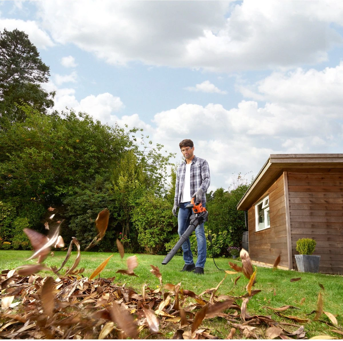 Deze 3IN1 krachtige BLACK+DECKER 3000W tuinruimer is de complete buitenoplossing in de lente en de herfst voor het effectief en moeiteloos opruimen en verzamelen van bladeren en ander tuinafaval. Door het 2-buizen conversiesysteem schakel je heel gemakkelijk van de blaasmodus over naar de zuigmodus. Het ontwerp zorgt voor de juiste prestaties bij elke taak. De 404 km/u blaassnelheid en 2 snelheden verwijderen zelfs de meest hardnekkige natte bladeren of zwaarder tuinafval terwijl de krachtige versnipperingsrotor deze tot wel 16 keer kleiner reduceert. Hierdoor versnel je het composteringsproces en verklein je de hoeveelheid tuinafval. Deze tuinruimer heeft een compact en ergonomisch design. De flexibele slang biedt optimale wendbaarheid en de pivoterende tweede handgreep zorgt voor extra comfort tijdens het gebruik. Het tuinafval wordt verzameld in een opvangzak met schouderriem van 40 liter. Door het ROLL+CLICKâ„¢ systeem kan je deze heel eenvoudig openen of sluiten waardoor je heel gemakkelijk de opvangzak leeg kan maken.