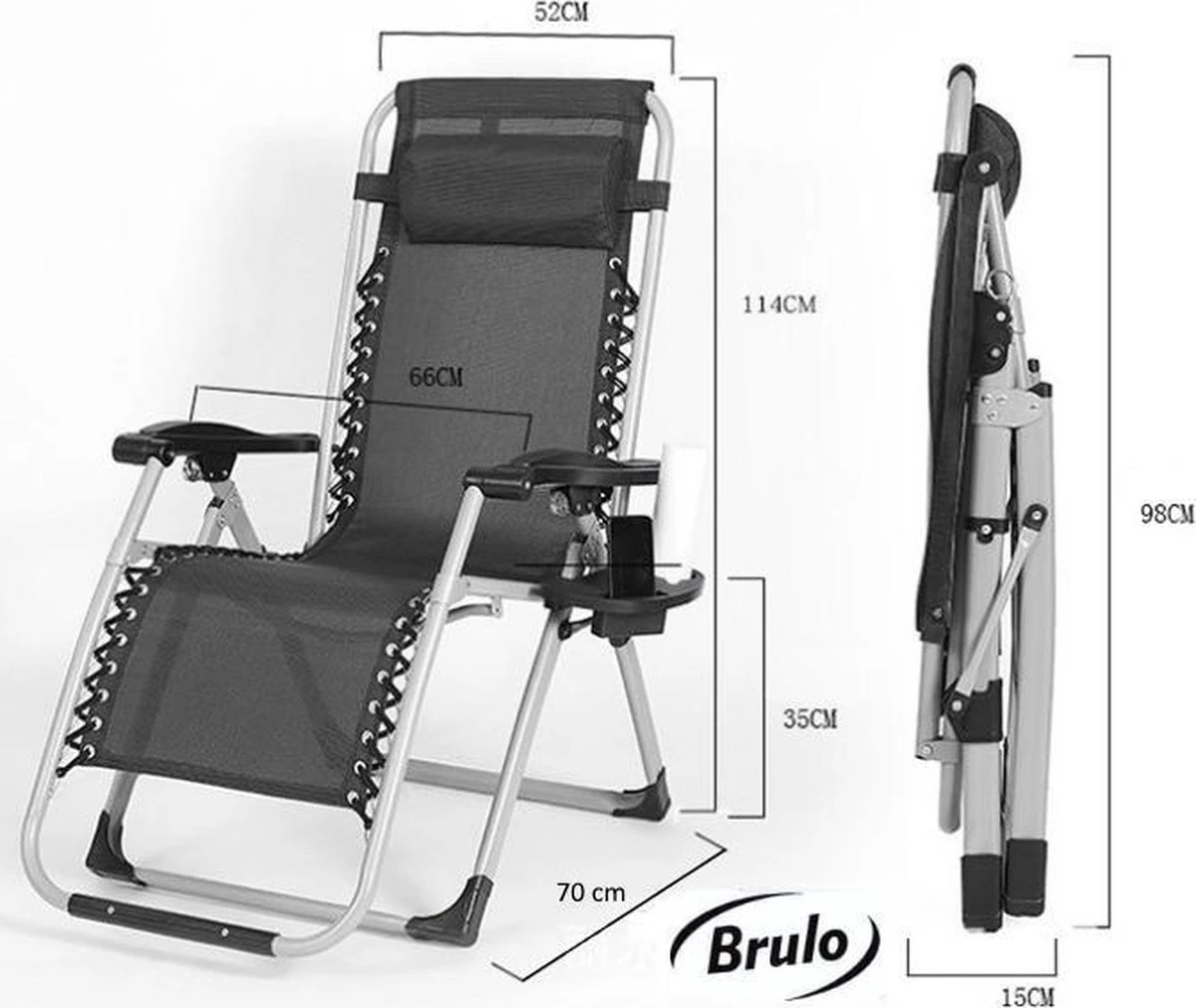Stevige rechthoekige buizen (40mm)_metalen frame_max belasting 180 kg_gewicht 7,2 kg _ incl tafel en kussen.