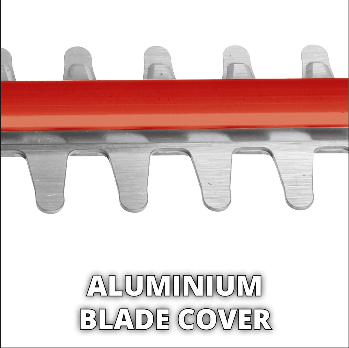 Om een lange levensduur van de machine te bevorderen en een snelle slijtage aan onderdelen tegen te gaan is de machine voorzien van een metalen tandwielaandrijving. Een veilige manier van werken wordt bevorderd door de tweehandige veiligheidsschakelaar op de accu heggenschaar. Bij het loslaten van de schakelaar staan de messen van de machine binnen een seconde stil. Het mes van de machine wordt beschermd door een aluminium mesafdekking over de messen van de accu heggenschaar. Aan de voorzijde van de accu heggenschaar zit een handige stootbeschermer met houder voor de wandmontage. Hang de machine bijvoorbeeld op aan een spijker of schroef in de muur.
