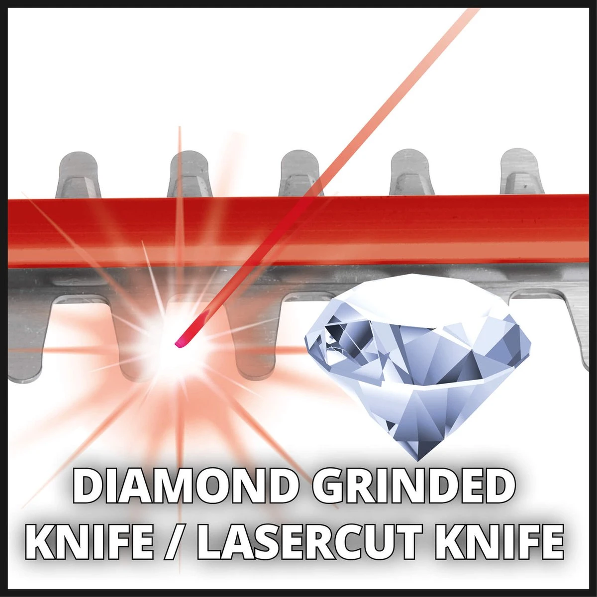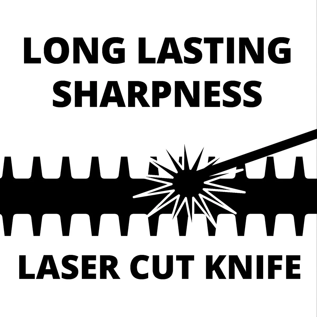 De messen van de machine zijn lasergesneden en van diamantgeslepen staal, waardoor de messen moeiteloos door takken van struiken en heggen gaan. De zwaardlengte is 520 mm met een snijlengte van 460 mm. Het aantal sneden is 2200 sneden per minuut. De tandafstand is 15 mm met een maximale snoeidikte van 11 mm.