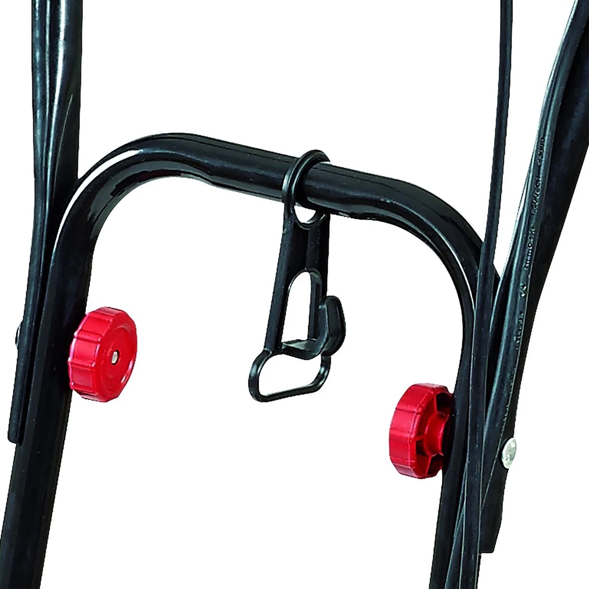 De machine kan na gebruik ruimtebesparend worden opgeborgen dankzij de ergonomisch vormgegeven klapbare geleidesteel. Tevens is de geleidesteel hiermee perfect af te stellen bij je eigen lichaamslengte.