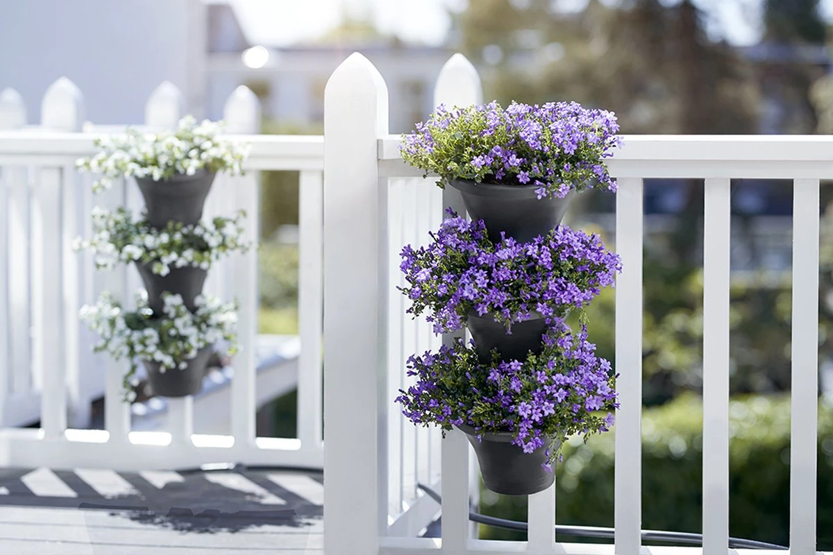 Als jouw terras of balkon niet groot of groen genoeg is, ga jij gewoon heel creatief de hoogte in! Ga verticaal tuinieren en combineer eindeloos veel planten en bloemen met elkaar op je balkon, terras, muur of schutting. De set met 3 potten wordt standaard geleverd met balkon- en muurhaken en is dus overal te plaatsen. De potten zijn voorzien van een handig overlooppijpje. Zo staan je plantjes nooit te nat, zijn ze beschermd tegen wortelrot en worden de plantwortels perfect belucht. Kun jij nog langer van ze genieten!