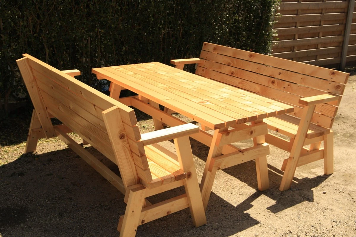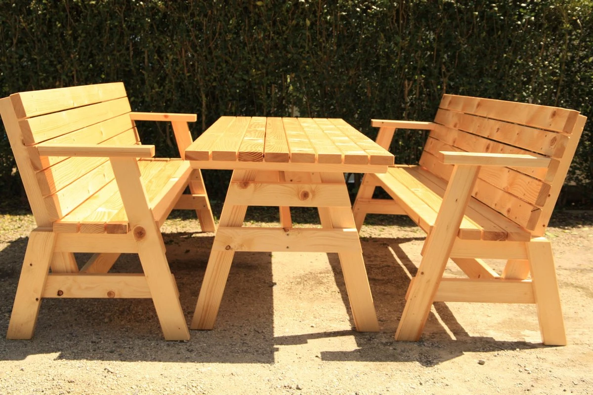 De banken & tafel zijn reeds gemonteerd en is dus ideaal voor de ‘niet zo handige harry’s onder ons’.