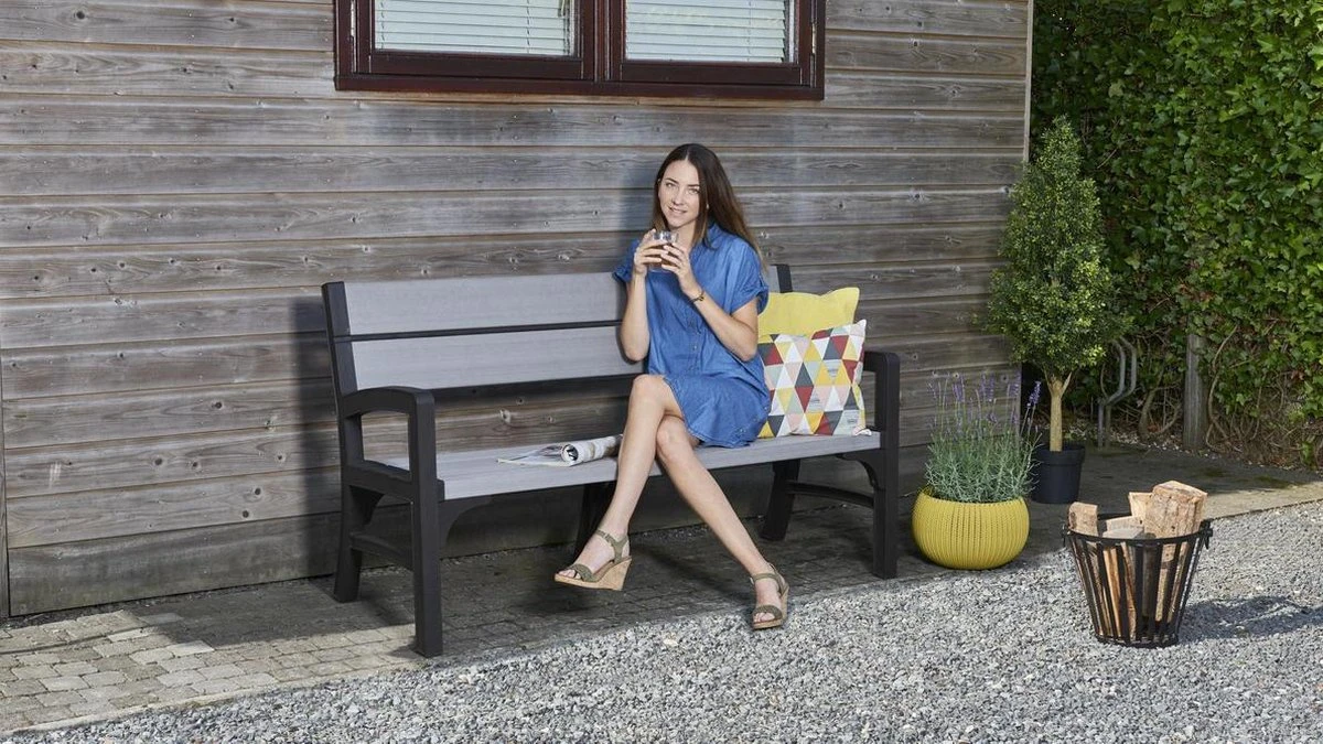 De Keter Montero Tuinbank verbetert het uiterlijk van elke tuin en biedt een comfortabele en ruime buitenzitplaats. Onderhoudsvriendelijk en van hoge kwaliteit. De bank is gemaakt van DUOTECH, een innovatief materiaal dat zorgt voor weerbestendigheid en UV-bescherming, waardoor het oppervlak vrijwel onderhoudsvrij is. Met een tweekleurig ontwerp en een houtachtige textuur is de bank zowel mooi als praktisch.