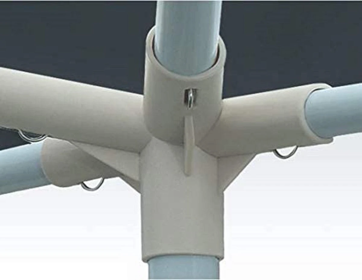 Het paviljoen is voorzien van 4 verankerbare poten en een metalen constructie.