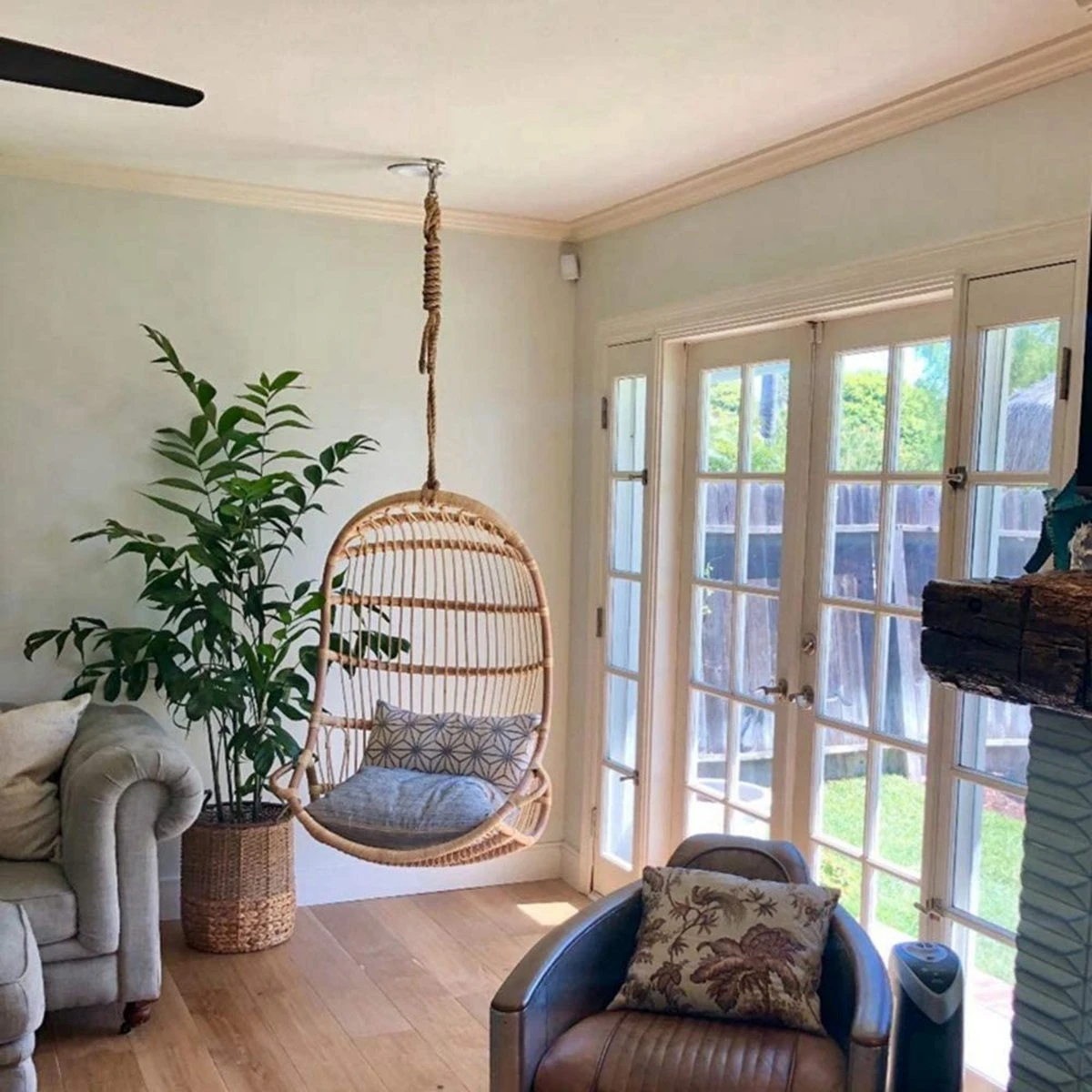 Of u nu een hangstoel, schommel of bokszakwilt ophangen, het kan allemaal met de plafondhaak van Ruffman.