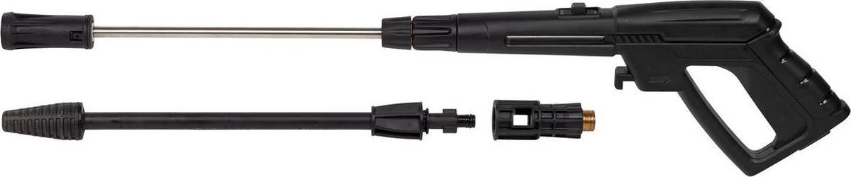 - De hogedrukreiniger heeft een stevige handgreep en wieltjes zodat je hem moeiteloos verzet. Het toestel heeft ook een pistoolhouder, zo hang je het pistool netjes weg als je klaar bent met je klus.