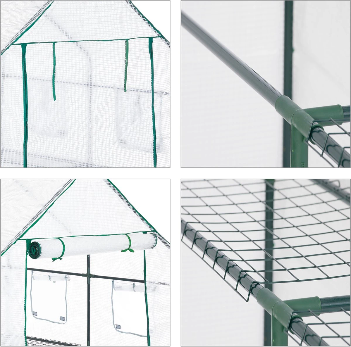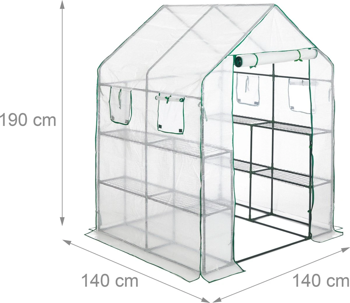 Met de kweekkas geniet je van de lente tot de herfst van verse groenten. Je kan ze gebruiken om jonge planten bij het gedijen te helpen of om tomaten te kweken. De begaanbare tuinkas is dankzij het eenvoudige steeksysteem zonder gereedschap in elkaar te zetten. Aan de binnenkant van de foliekas bieden 8 planken op 2 etages genoeg ruimte voor kleine plantjes. Voor grotere planten kun je de planken eruit halen. De folie met 4 ramen biedt de optimale bescherming tegen wind en weer. Indien nodig kun je de broeikas makkelijk verplaatsen.