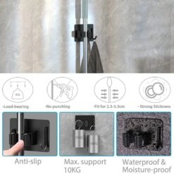 BOTC Bezemhouder – 4 Stuks – RVS – Bezem Ophangsysteem – Bezem Houder – Tuingereedschap – Zwart