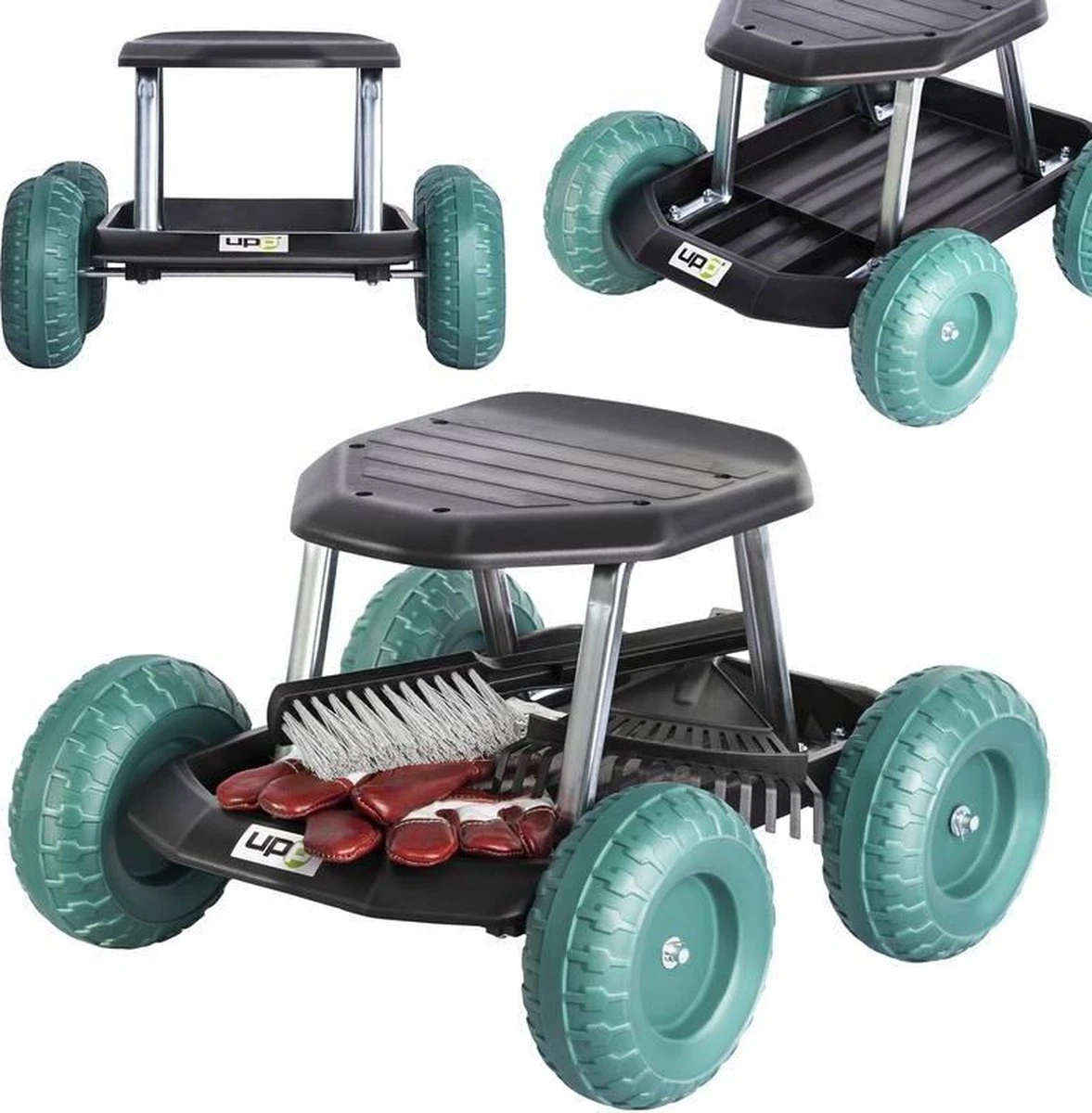 Met dit tuinkrukje maak je elke klus een stuk makkelijker.Efficiënt en een stuk gemakkelijker door middel van de wielen.Hij heeft een comfortabele zithoogte van 33 cm en biedt ook voldoende opbergruimte voor gereedschap.